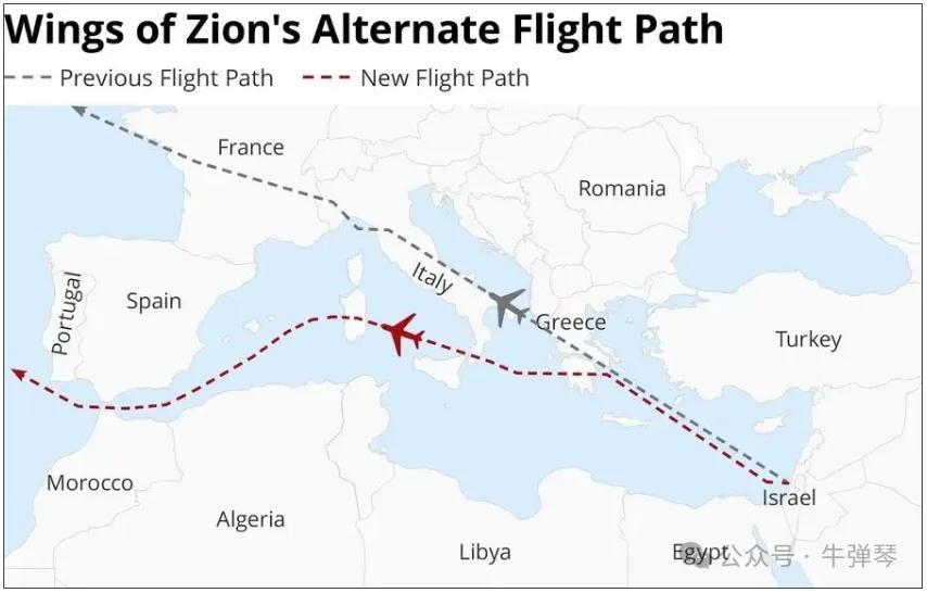 要知道,地球是圆的,以色列飞机出发去纽约,一般都向西北穿越欧洲的意大利、法国、西班牙 ……