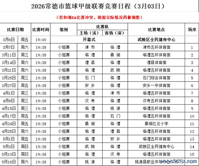 红网时刻新闻3月11日常德讯(记者陈妍)3月11日晚19:38,“千年国酒”2026常德市甲级篮球联赛将迎来双赛对决,临澧五环全民健身中心与安乡一中体育馆同时燃情开球,临澧迎战鼎城、安乡对阵石门,两场硬仗同步上演,错过等一年!