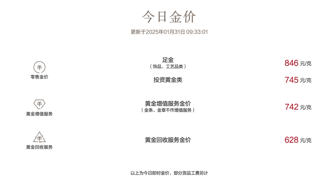 1月31日,国内多家金店足金首饰价格已达846元/克。